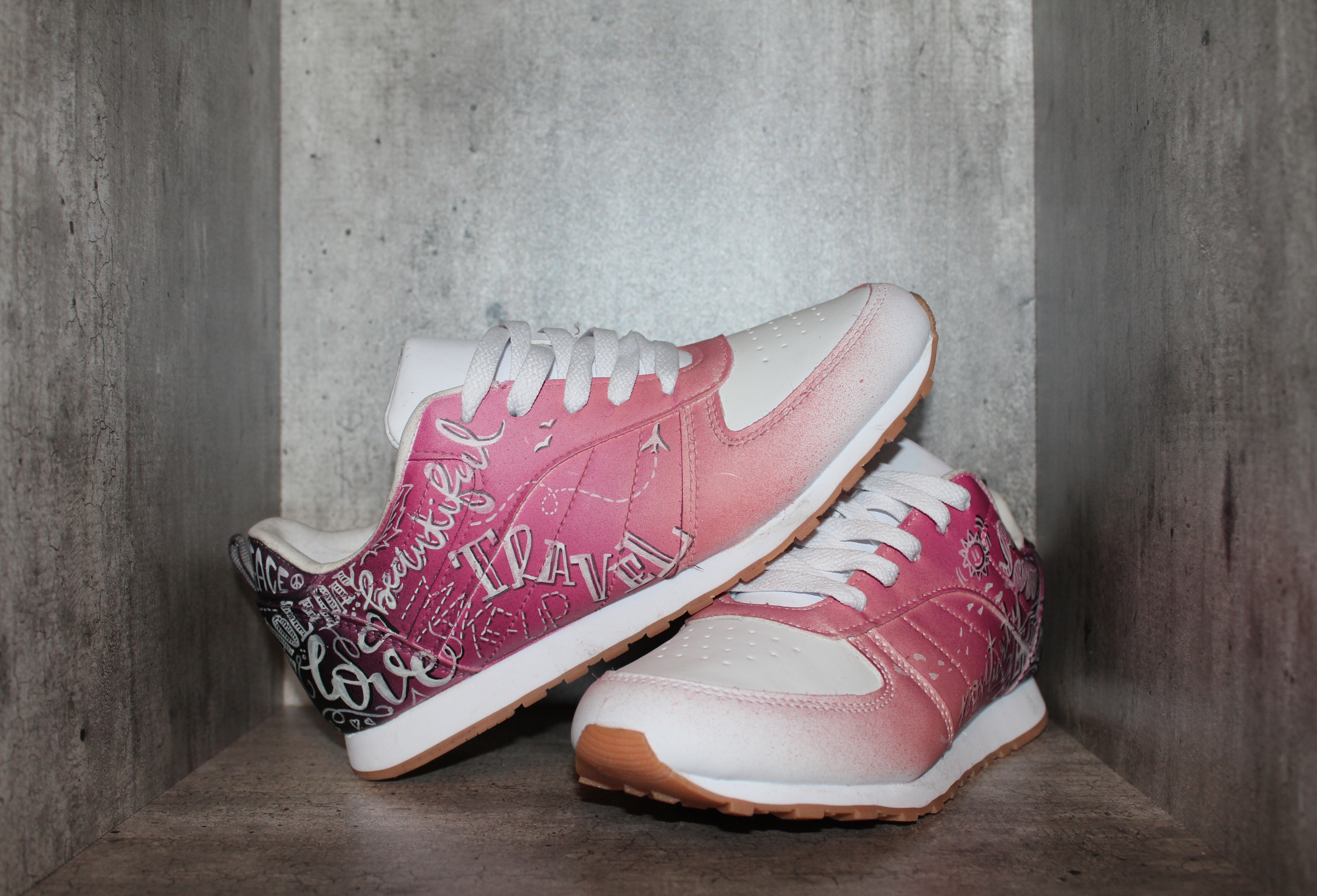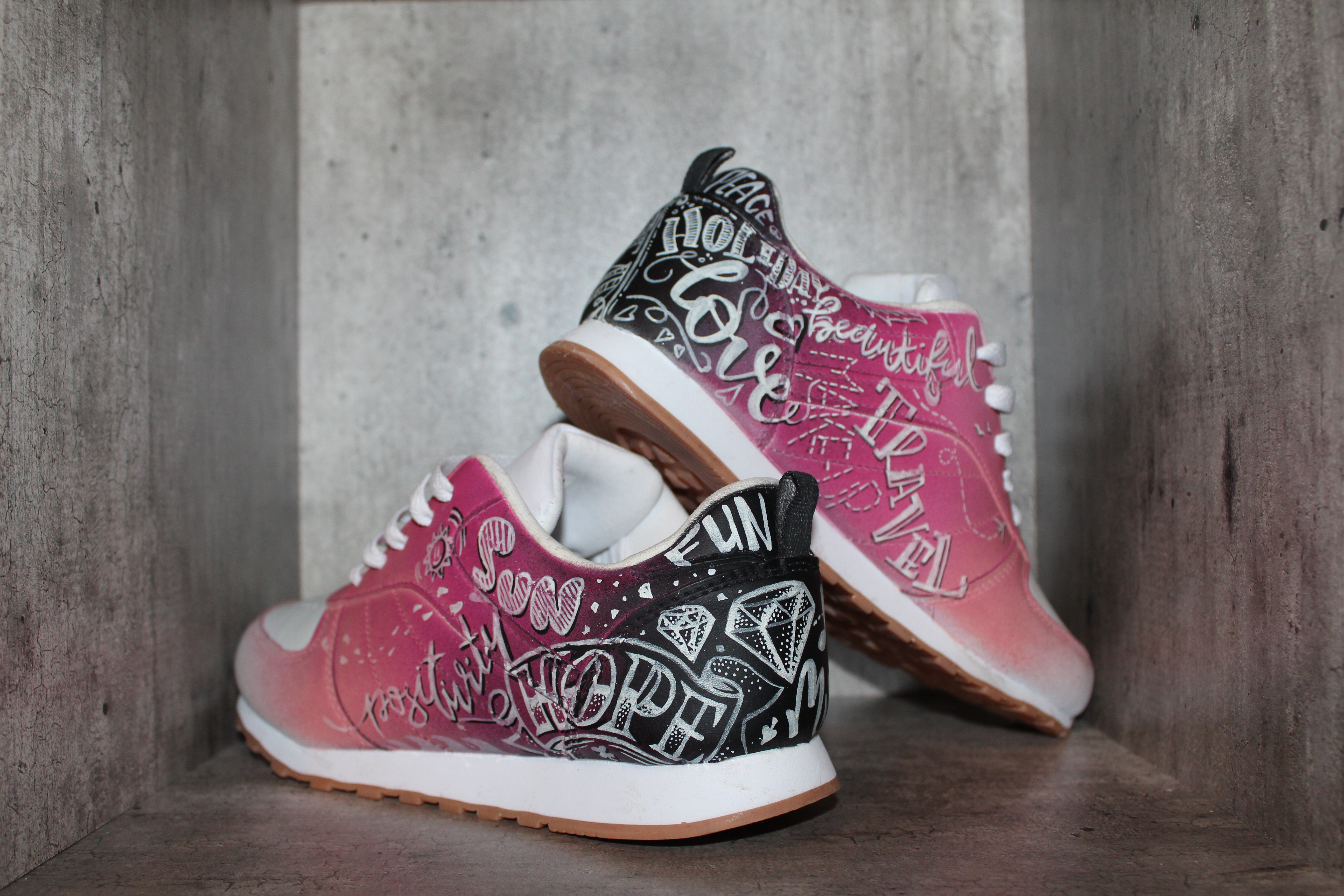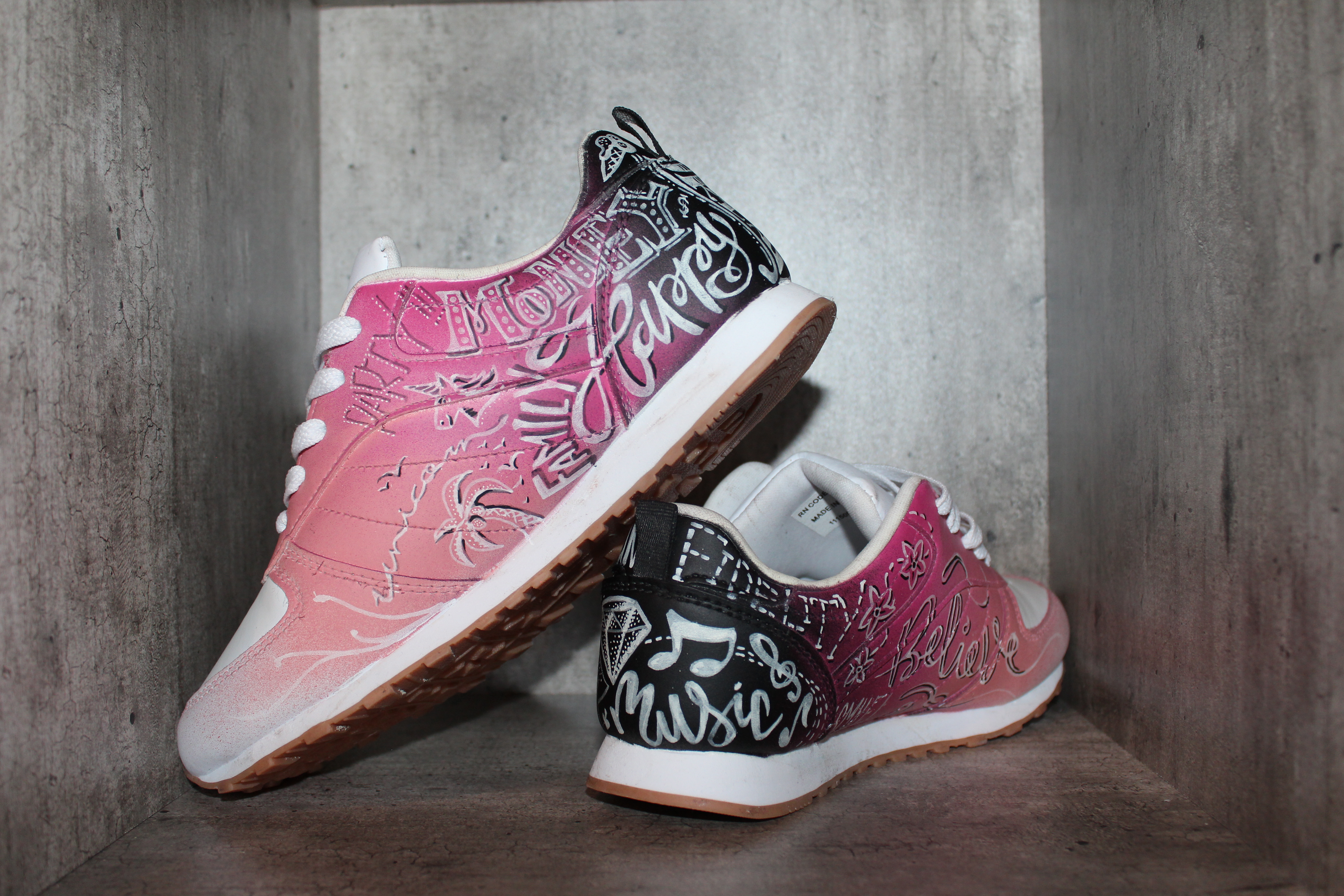 Vous êtes un fanatique de belles pompes? Un sneakeraddict? Ou vous voulez simplement vous différencier des autres avec un look unique? Nous avons pensé à vous et vous proposons à travers cette rubrique un large choix de customisation de sneakers, bottes, chaussures en tout genre et quelque soit la matière. Tout est possible, tout est faisable, que ce soit du graffiti au paysage, du réalisme au tattoo, du manga au comics, tu choisis et on s’occupe du reste!